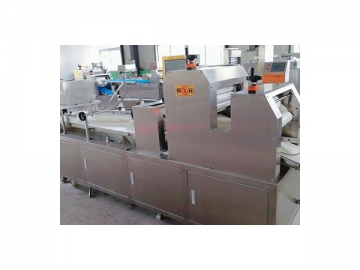 - Irregular dough sheet is rolled into regular sheet by dough rolling device. Its thickness can be adjusted through the PLC control system.